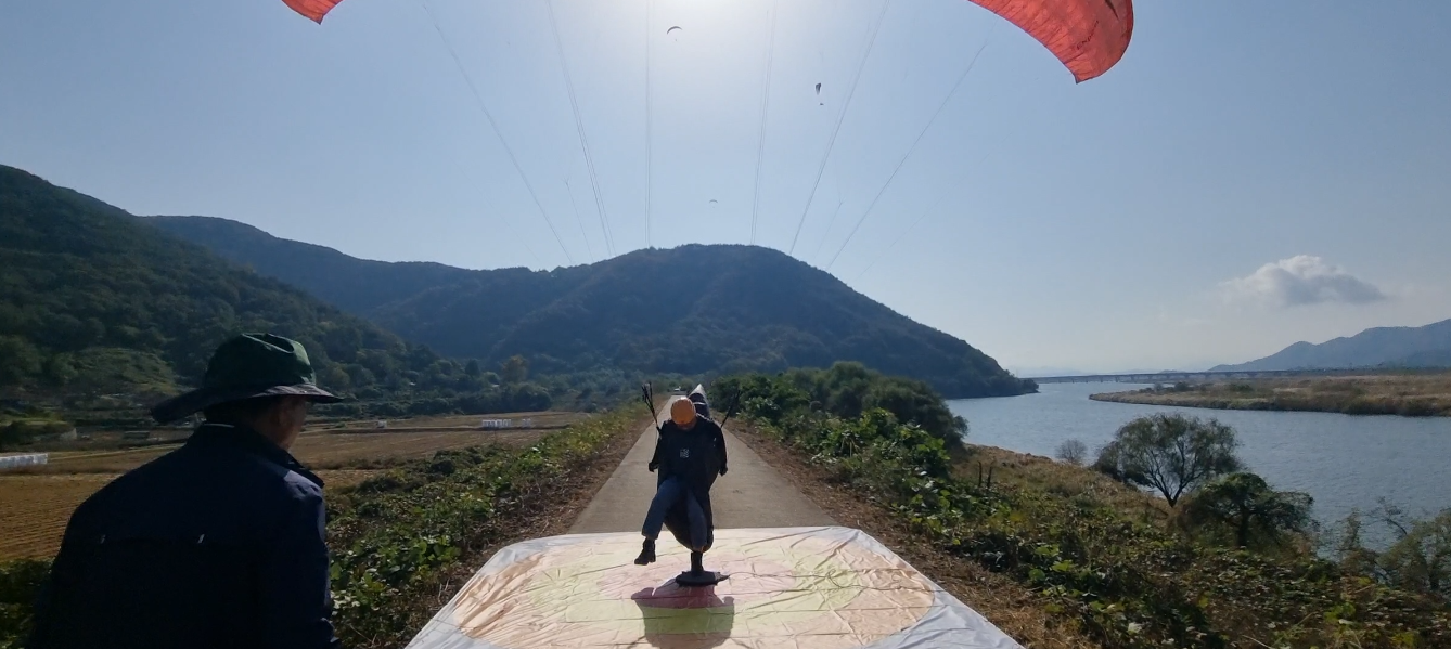 이분을 잘 들어오다가 측풍에 살짝 밀리면서 학다리 권법으로 착지합니다...ㅎㅎㅎ
