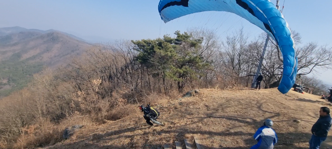 다시 이륙장으로 가는데, 바람이 없다보니 애매합니다.