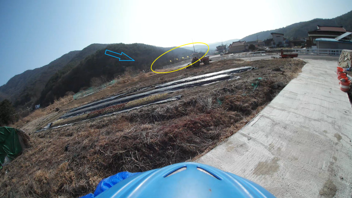 다행이 밭 언덕까지 안가고, 밭 중앙에 살짝 쿵 엉덩방아 찌었네요...ㅠ.ㅠ.