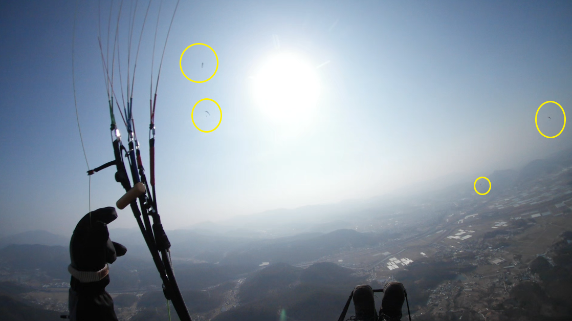 천석형님 기체가 보이고, 천주산을 못 넘고 돌아갑니다.