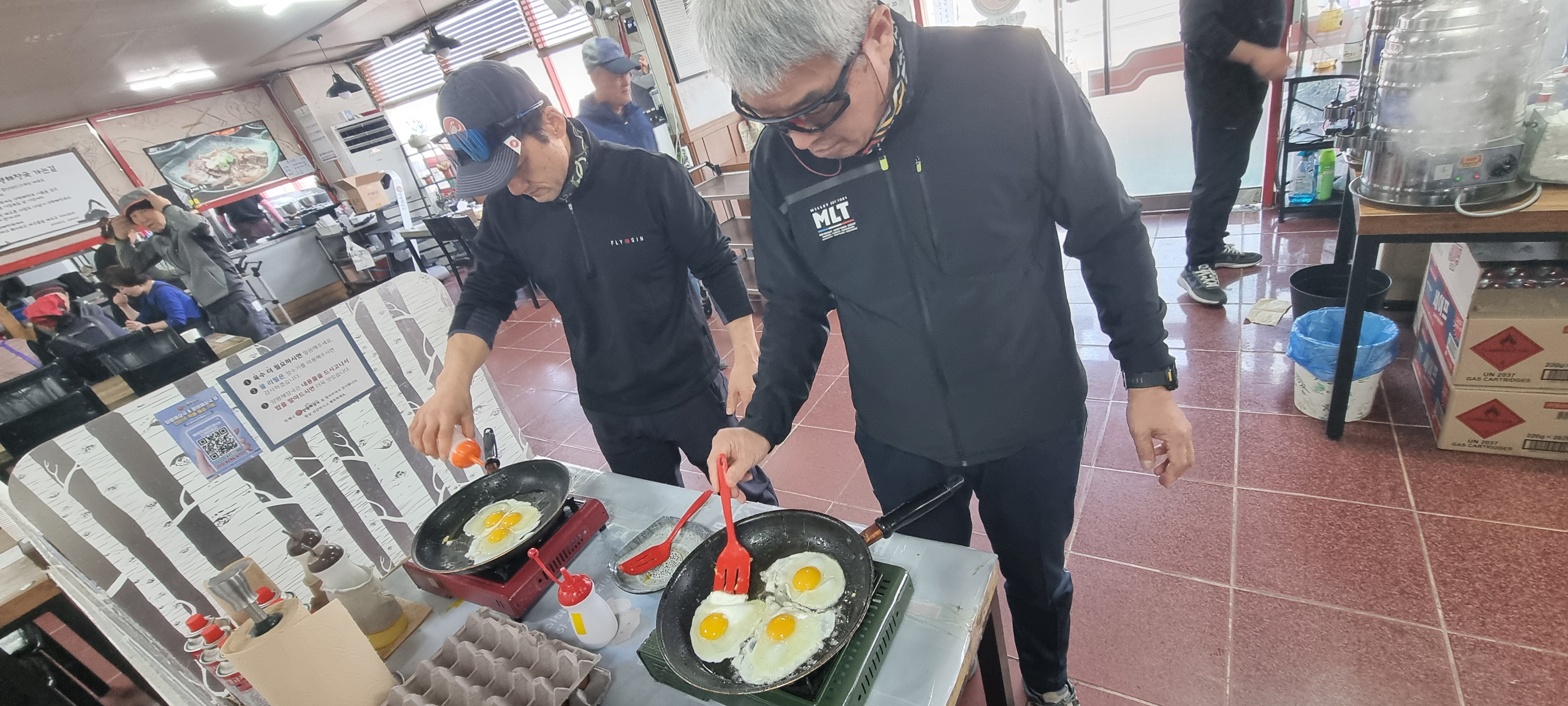 비행전 점심먹고 올라간다고, 오랜만에 양평해장국집에 왔는데, 근데 집에서 안하는 사람들이 밖에서 계란 붙치고 있네요.