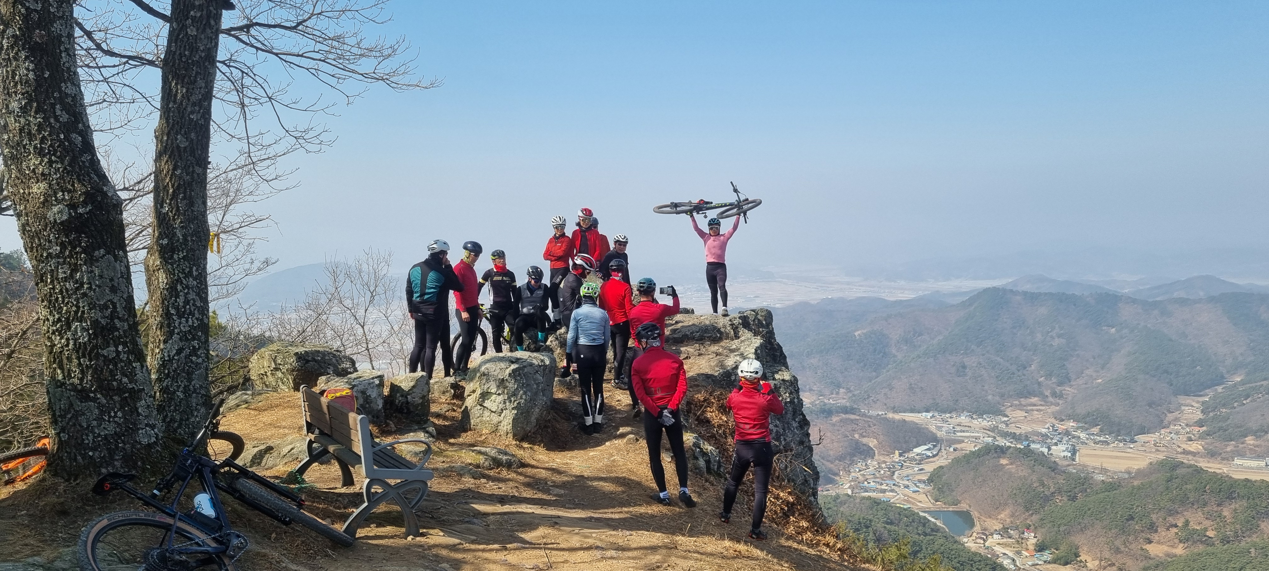자양산 바위 위에서 각자 멋진 포즈로 촬영하네요.