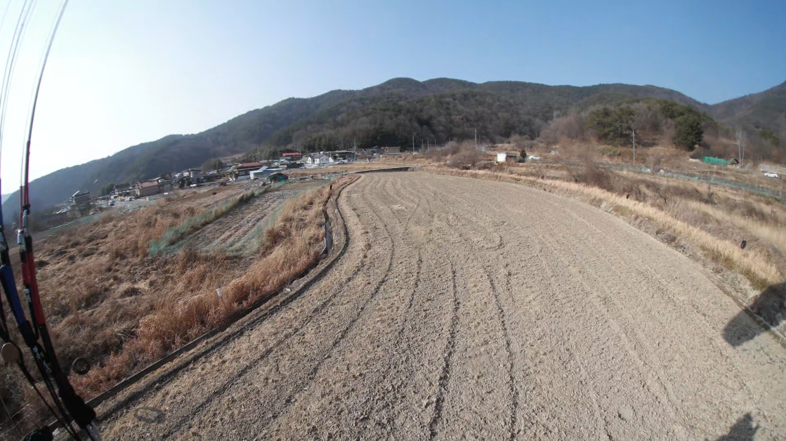 저수지 뒤쪽 밭 착륙지를 물색해 봅니다.