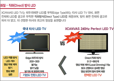 안타깝게도 이번에 LG디스플레이에서 개발한 "테두리형 LED 백라이트 LCD 패널"이 LG전자에서는 그다지 환영받지는 못할 것 같다. LG전자는 올해 초 (직하형) LED TV를 출시하면서 제품 스펙과 특장점을 싣는 코너에 '테두리형 LED'에 대한 강한 거부감을 표현한 바 있기 때문이다. 테두리 방식과 직하방식을 비교하면서 테두리 방식을 '기본도 안된 LED TV'라고 폄하하고 있다.