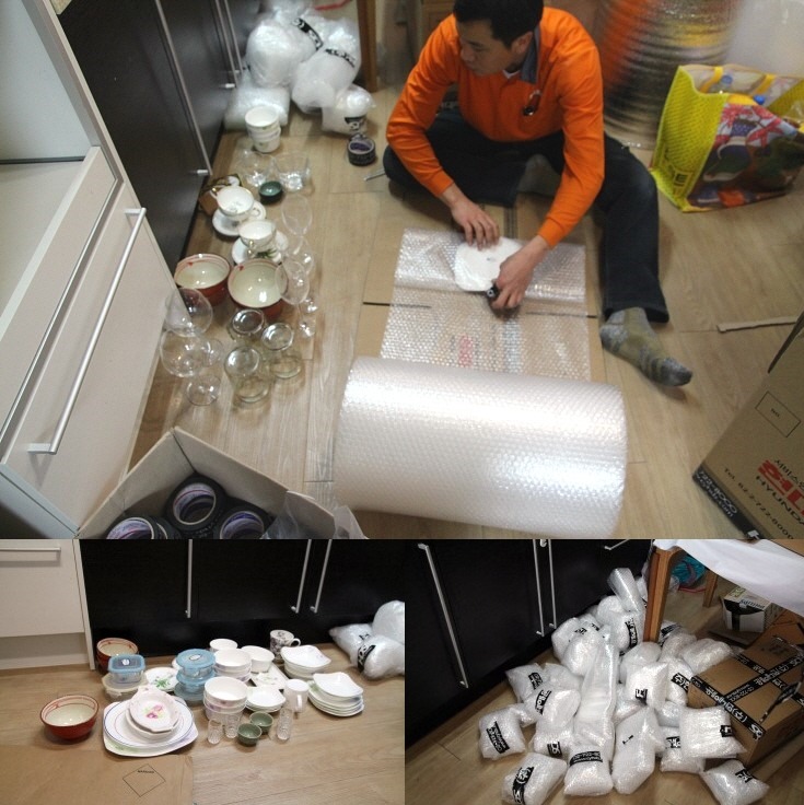 주부라면 가장 중요하게 생각하는 그릇들도 하나씩 진공포장을 해서 차곡차곡 안깨지게 포장합니다