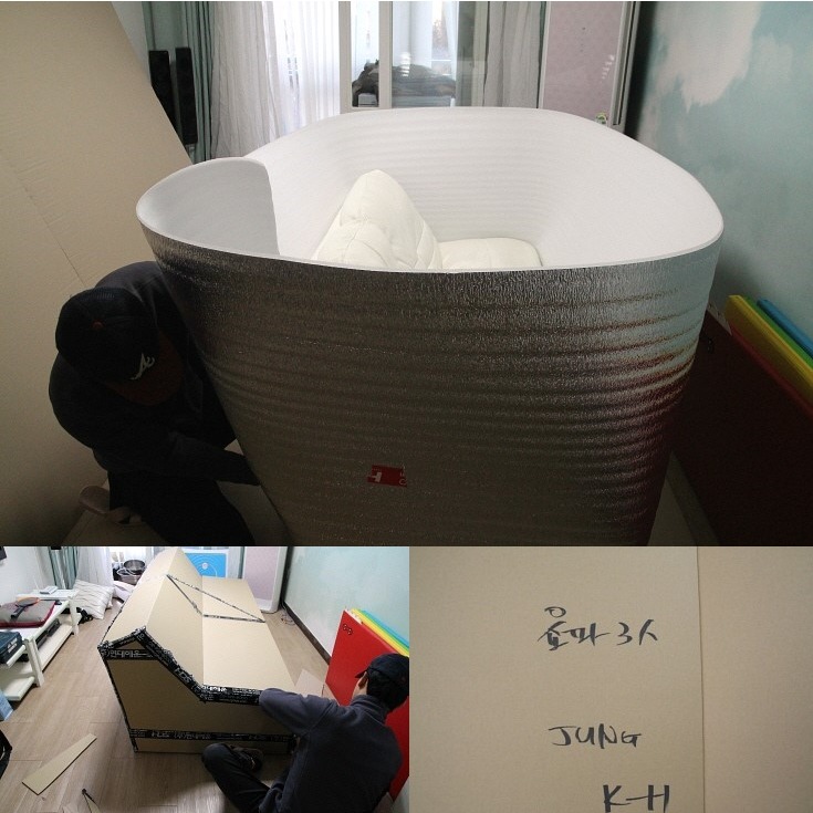 소파포장 세밀하게 하고 박스에 소파라고 표기해둡니다