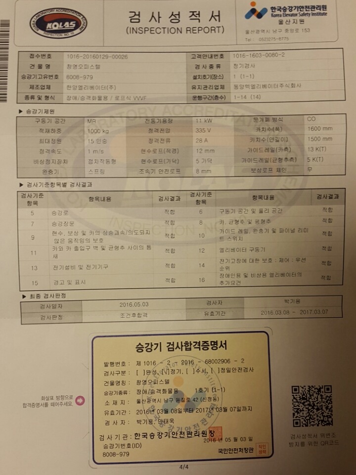 승강기 검사합격증명서 작성자창영운영위원회회장|작성시간16.05.14|조회수473 목록 댓글 0 글자크기 작게가 글자크기 크게가 정기검사시 지적사항 보완작업후 재검으로검사합격증명서를 받았습니다. 다음검색 현재 게시글 추가 기능 열기 북마크 공유하기 신고 센터로 신고 댓글 댓글 0 댓글쓰기 답글쓰기 댓글 리스트