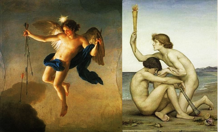 아래왼쪽그림은 독일 화가 안톤 라파엘 멩스(Anton Raphael Mengs, 1728~1779의 1765년작 유화 〈의인화된 저녁샛별, 헤스페로스(Hesperus als Personifikation des Abends)〉이다. 아래오른쪽 그림은 잉글랜드 화가 이블린 디 모건(Evelyn De Morgan, 1855~1919)의 1881년작 유화 〈아침샛별(Phosphorus; 포스포로스)과 저녁샛별(Hesperus; 헤스페로스)〉이다.