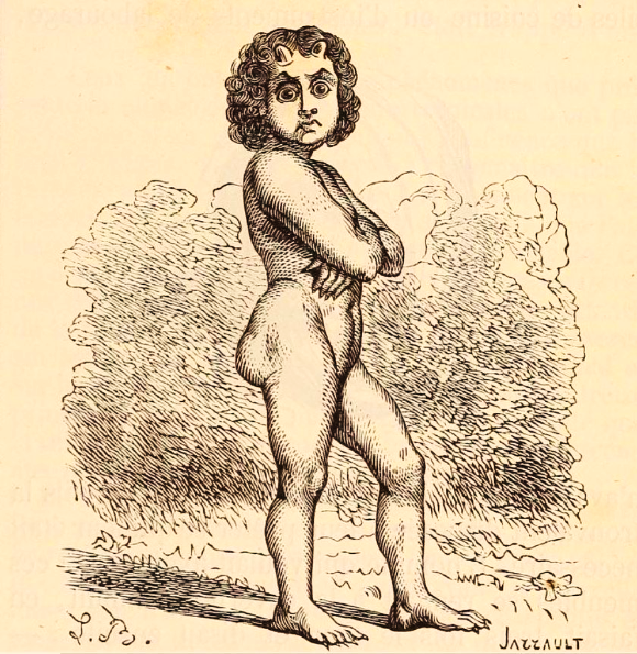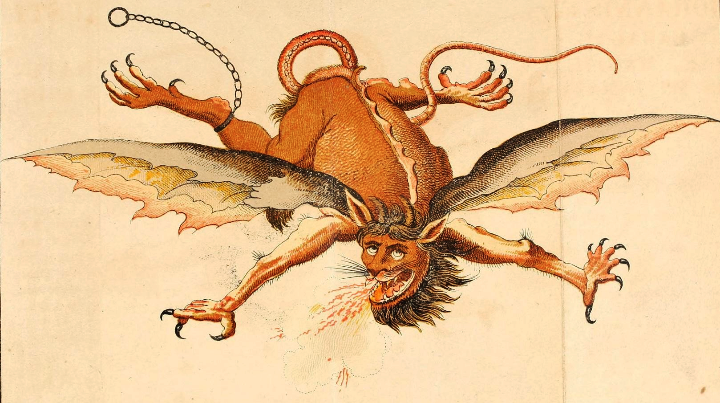 아랫그림은 독일 출판업자·고문서수집가 요한 샤이플레(Johann Scheible, 1806~1866)가 1849년에 편찬한 《박사 요한네스 파우스트의 자연주술과 비자연주술(Doktor Johannes Faust's Magia naturalis et innaturalis)》에 수록된 삽화 〈루키페르(Lucifer)〉이다.