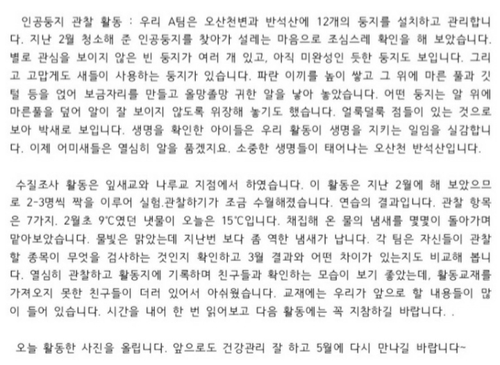 코로나 19로 인해 3월 활동은 하지 못했고, 오늘에서야 4월 활동을 하였습니다.