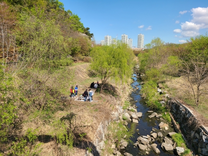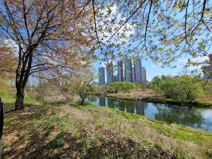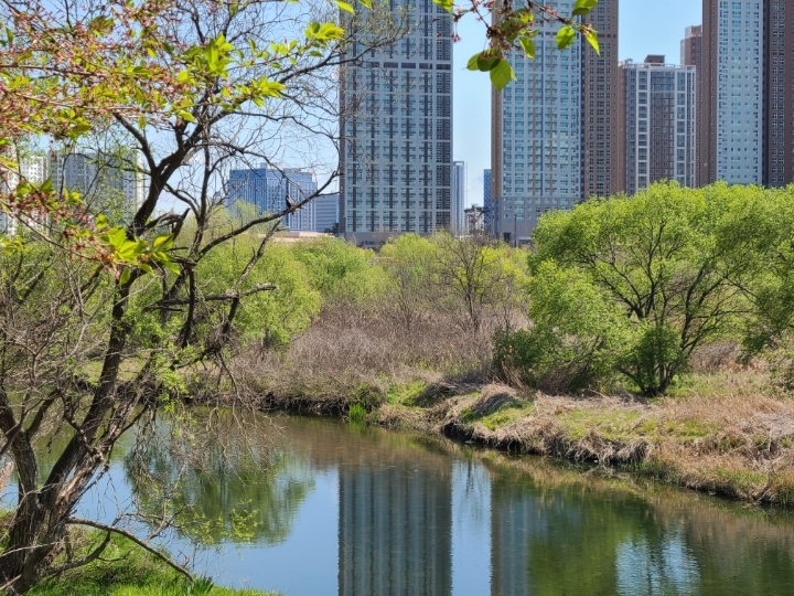 오늘 천변과 반석산의 나무들은 물이 올라 연두색 잎새들이 한껏 피어나고 있습니다