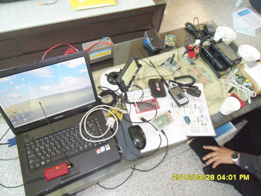 어제 3/28 토요일, 오후 3시경부터 쎄미나를 시작하여 D-STAR소개와 함께, 전세계 및 한국의 D-STAR 현황, D-STAR 운용을 위한 장비구성, 운영방법, 각종 프로그램 쎄팅방법 등에 대한 설명이 있었고 이어서 D-STAR 교신 시연도 있었습니다. 독일, 미국 등 많은 해외국들과 교신을 하면서 D-STAR 가 어떻게 연결이되고 어떻게 교신이 이루어지는지에 대한 시범도 보였는데, 특히 미국 시카고에 사는 한국교포이신 N9KOJ Robert 최 om께서는 현지시간으로 새벽1시가 넘도록 주무시지도 못하고 D-STAR교신에 응해 주시면서 현지의 D-STAR 사정에 대해 말씀해 주셨는데, 다음날 아침에도 이른시간부터 다시 D-STAR교신에 응해 주셨습니다.