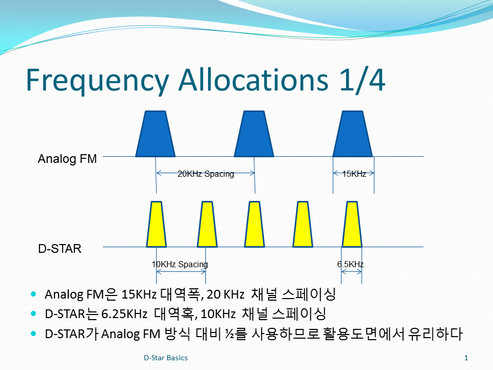 아래 그림의 내용이 설명하듯 D-STAR는 주파수 할용도(Utilization)면에서도 좋습니다.