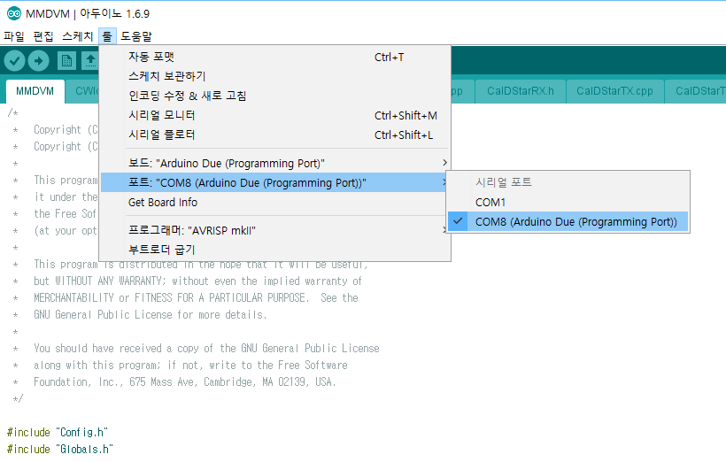 <Arduino Due 보드에 MMDVM 소프트웨어 설치>