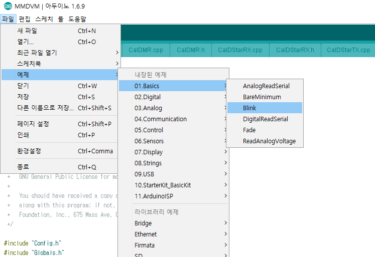 MMDVM/MMDVM.ino 파일을 엽니다 (윈도우 탐색기에서 파일을 더블클릭하면 아두이노 IDE 편집기가 바로 뜹니다)
