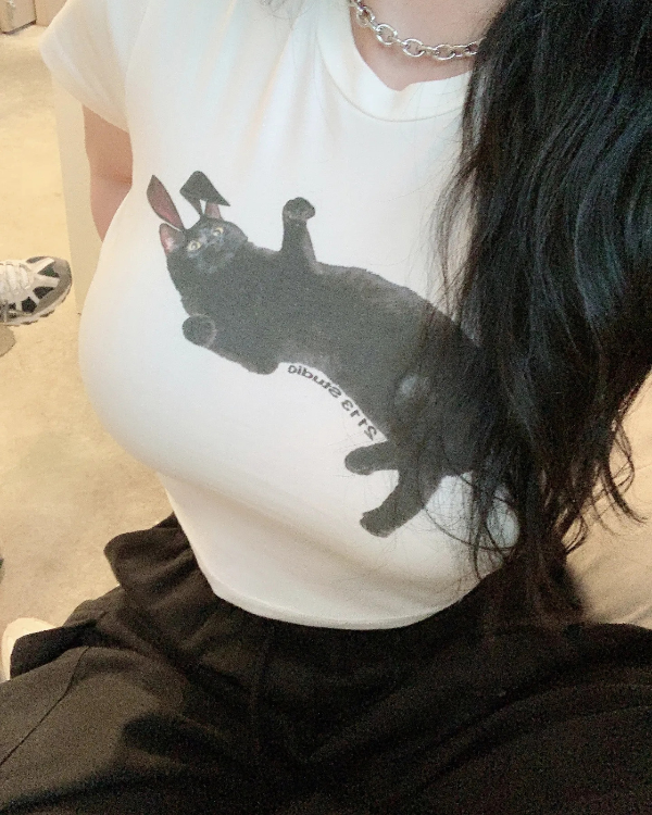 요즘 고양이가 프린팅 된 티셔츠가 많이 보이는데
