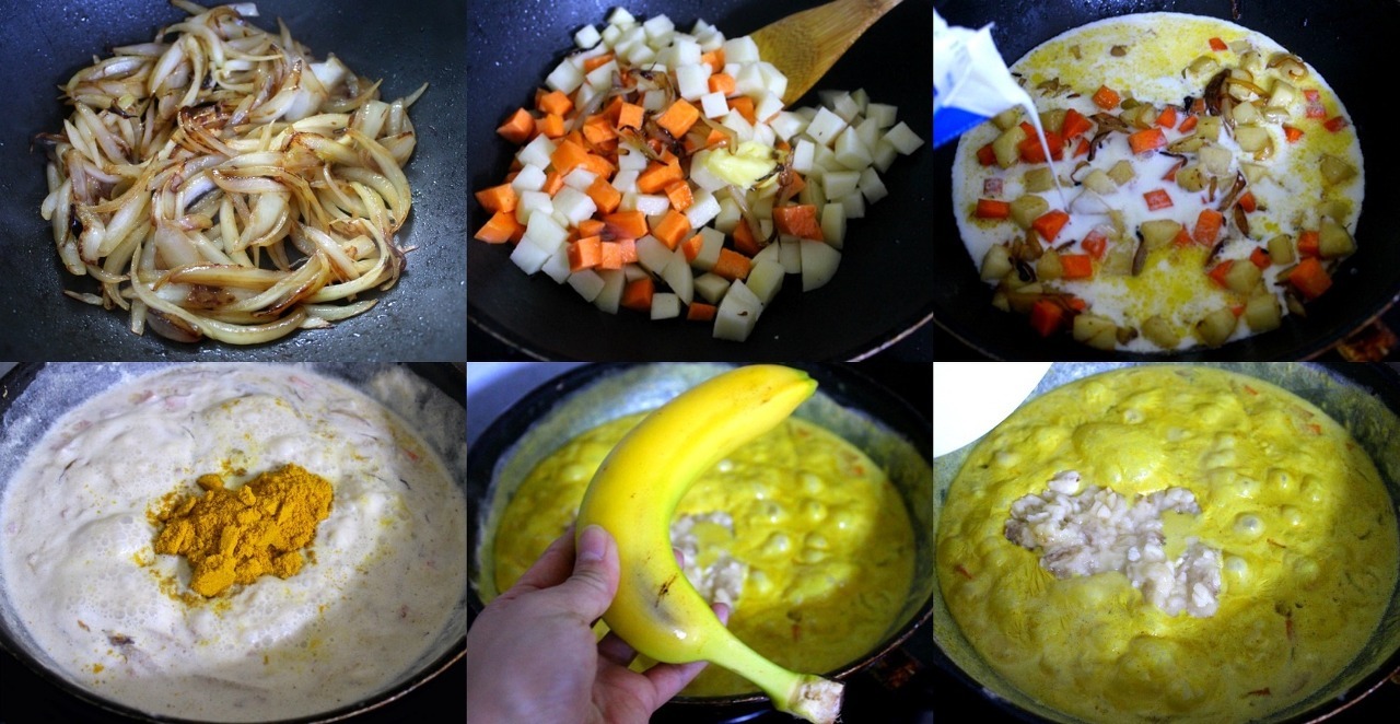 4) 마지막으로 카레가루를 푼 다음 으깬 바나나를 넣어주면 고소한 바나나 우유 카레 완성입니다.