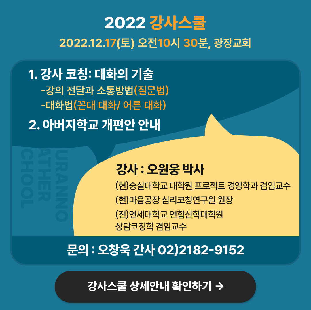 [카드 뉴스]두란노아버지학교 카드뉴스 12월 둘째주 작성자심인식|작성시간22.12.14|조회수3 목록 댓글 0 글자크기 작게가 글자크기 크게가 다음검색 현재 게시글 추가 기능 열기 북마크 공유하기 신고 센터로 신고 댓글 댓글 0 댓글쓰기 답글쓰기 댓글 리스트
