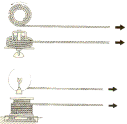 달라지므로 주의해야한다. 이것은 로프의 꼬임방향과 반대방향으로 감으면 로프의 반발력이 약해지는 방향으로 귄취되기 때문에 로프의 장력이