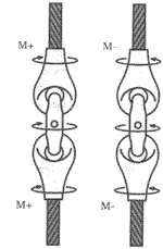 로프 연방향이 반대방향끼리 연결한 경우(자전이 발생한다.)