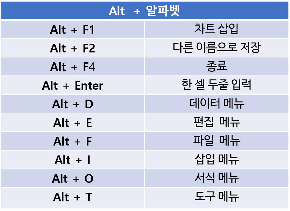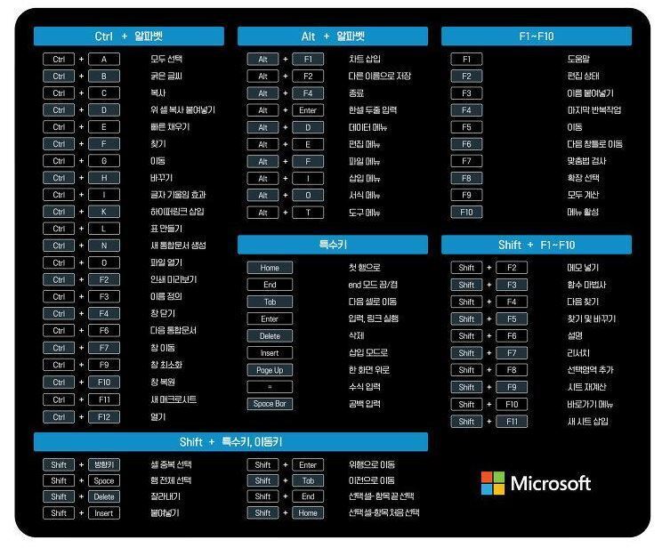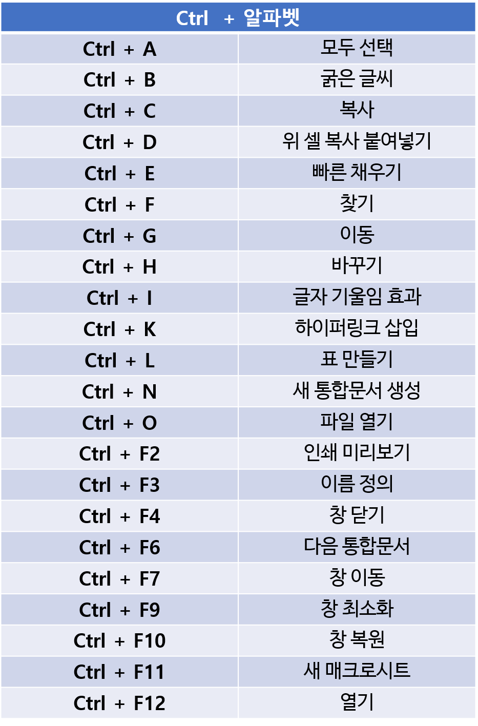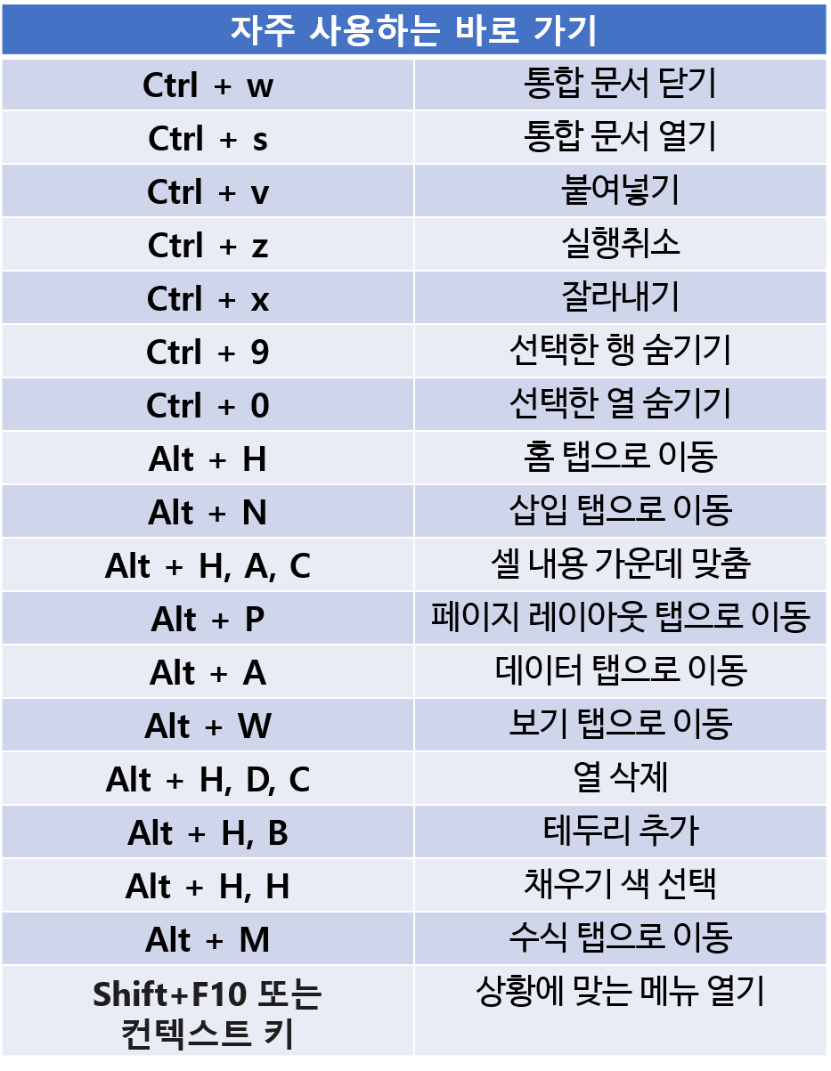 나도 엑셀 단축키가 정리된 표를 뽑아서