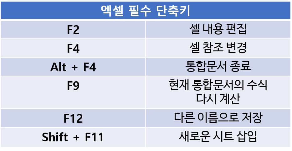 실무에서 많이 쓰이는 엑셀 단축키 모음