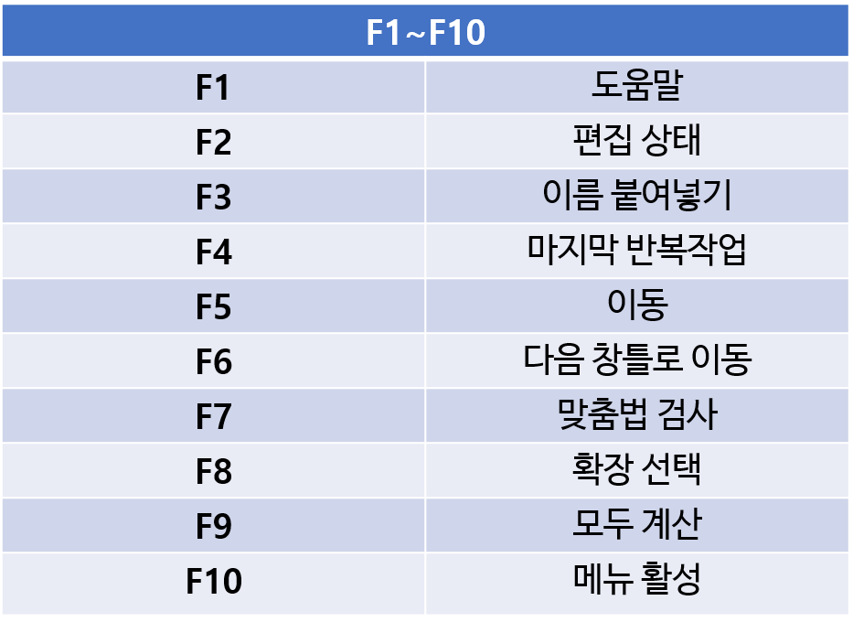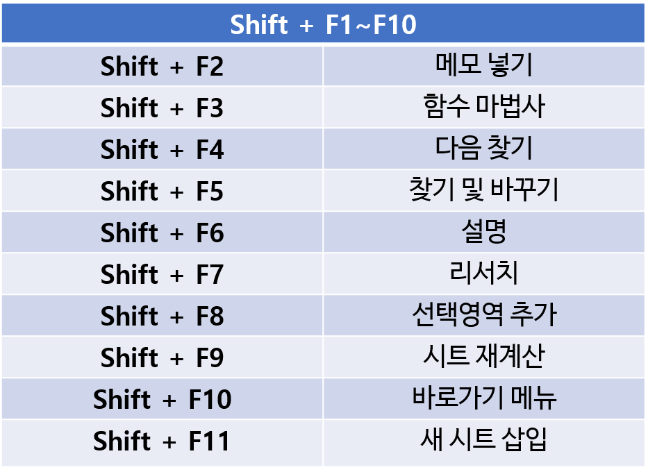 Shift + F1 ~ F10 엑셀 단축키 모음