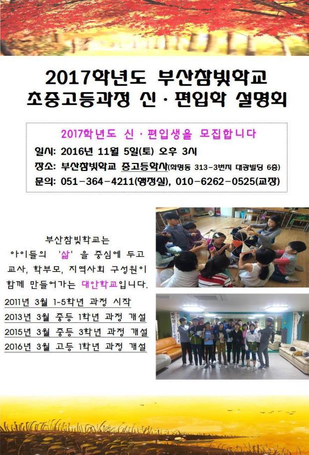 부산참빛학교 입학설명회(11/5) 합니다 작성자부산참빛학교|작성시간16.10.21|조회수22 목록 댓글 0 글자크기 작게가 글자크기 크게가 다음검색 현재 게시글 추가 기능 열기 북마크 공유하기 신고 센터로 신고 댓글 댓글 0 댓글쓰기 답글쓰기 댓글 리스트