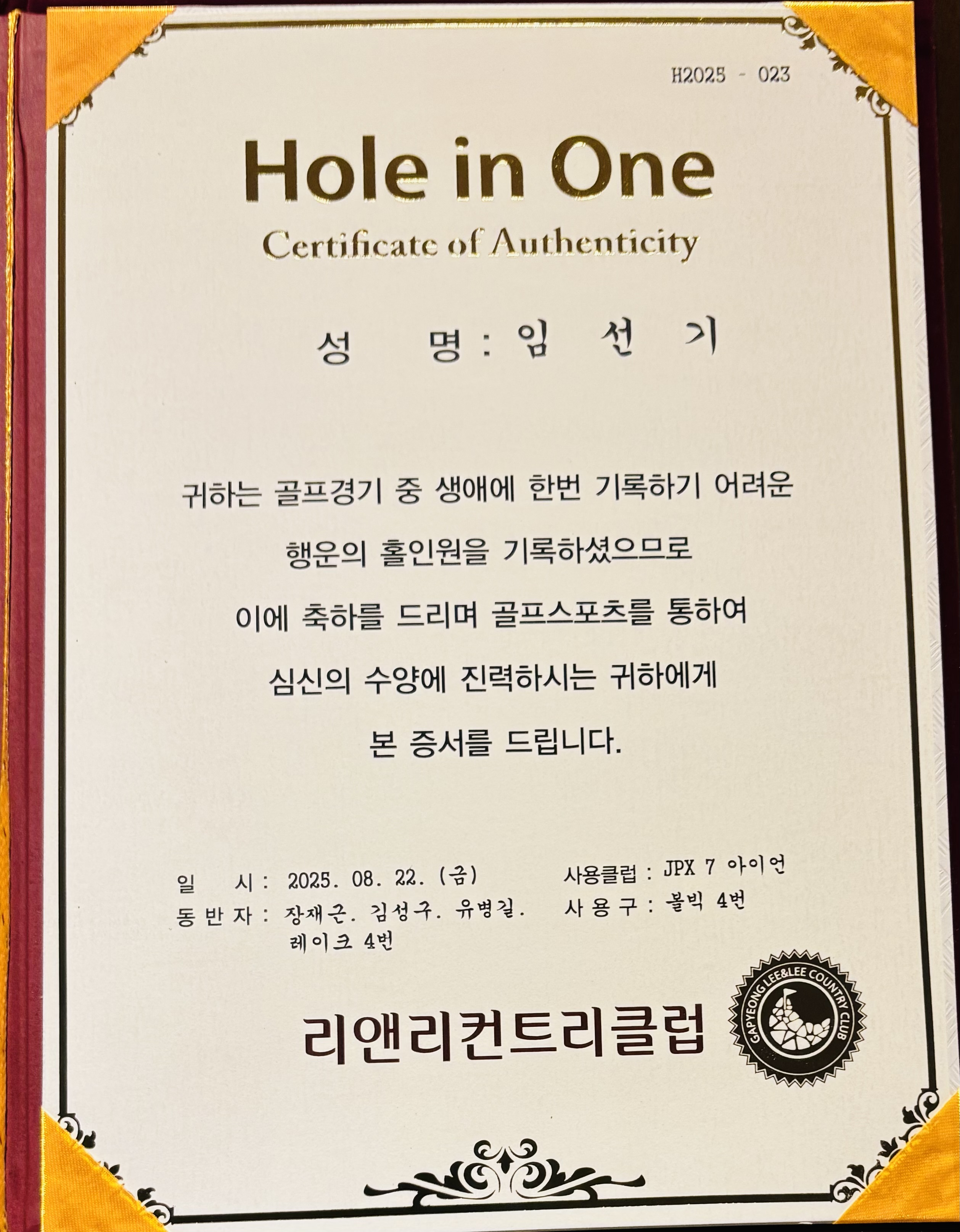 홀인원(임선기 스테파노/리앤리/2025년 8월 22일) 작성자Stephen성구|작성시간25.08.23|조회수7 목록 댓글 0 글자크기 작게가 글자크기 크게가 다음검색 현재 게시글 추가 기능 열기 북마크 공유하기 신고 센터로 신고 댓글 댓글 0 댓글쓰기 댓글 리스트