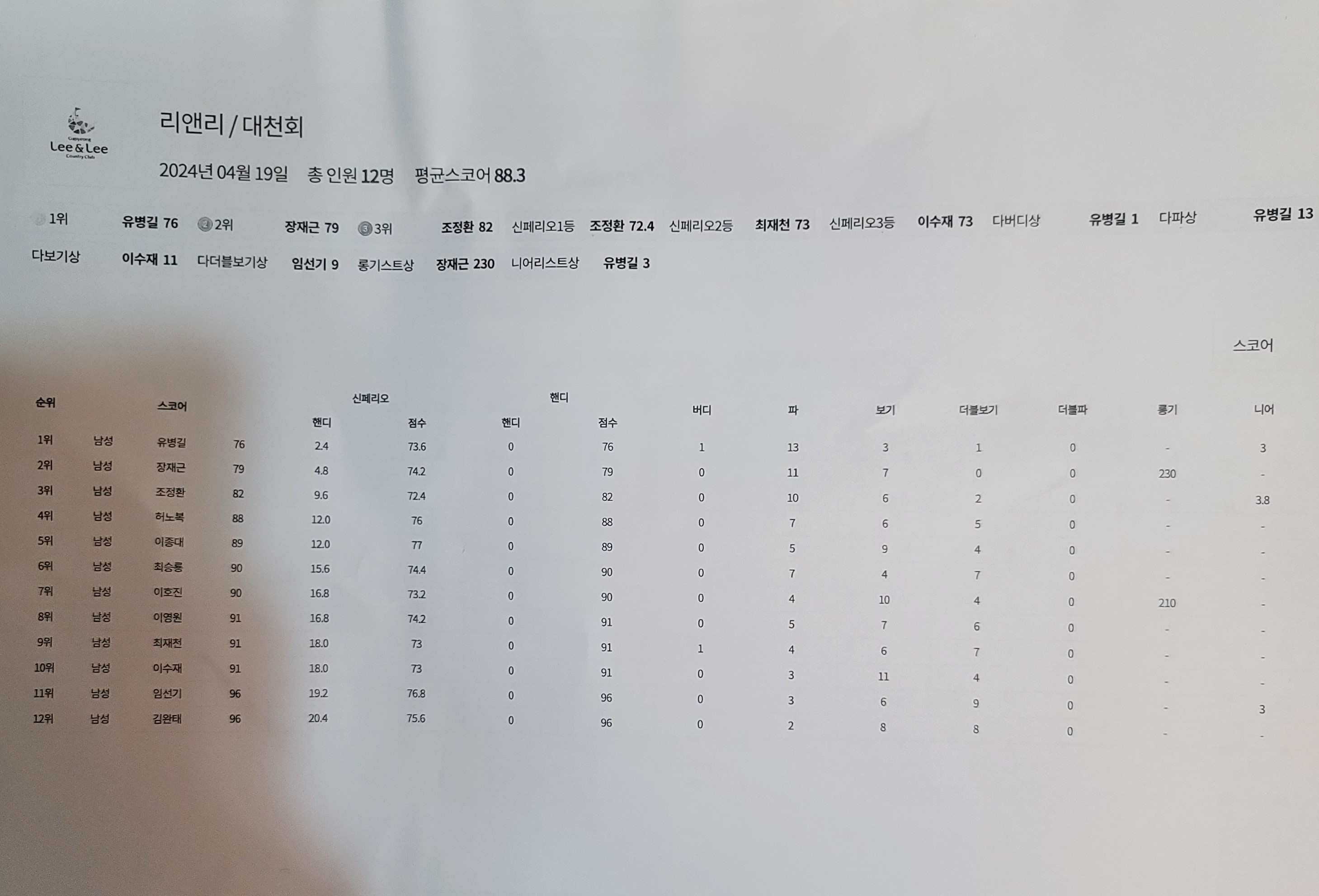 2024년 4월 월례대회 개인별 득점표(가평 리앤리) 작성자Stephen성구|작성시간24.04.23|조회수25 목록 댓글 0 글자크기 작게가 글자크기 크게가 다음검색 현재 게시글 추가 기능 열기 북마크 공유하기 신고 센터로 신고 댓글 댓글 0 댓글쓰기 답글쓰기 댓글 리스트