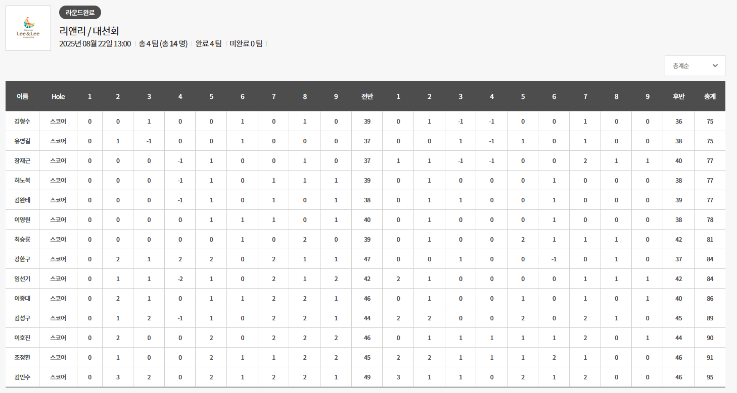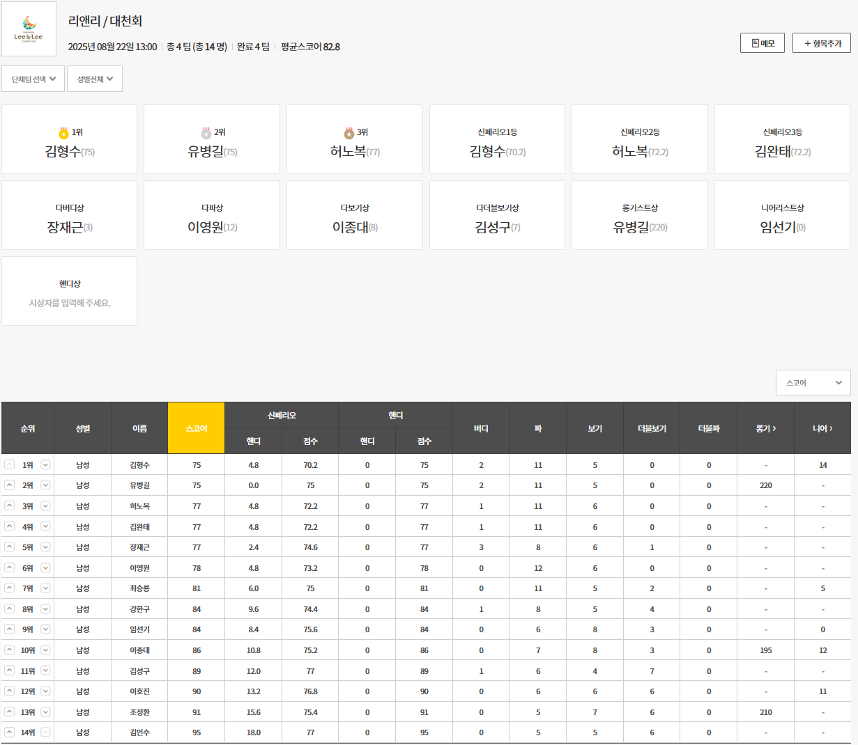 2025년 5월 월례대회 개인별 득점표(가평 리앤리) 작성자Stephen성구|작성시간25.08.23|조회수8 목록 댓글 0 글자크기 작게가 글자크기 크게가 다음검색 현재 게시글 추가 기능 열기 북마크 공유하기 신고 센터로 신고 댓글 댓글 0 댓글쓰기 답글쓰기 댓글 리스트