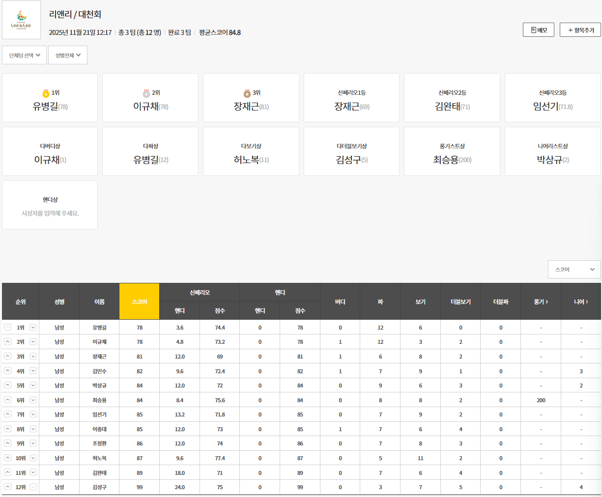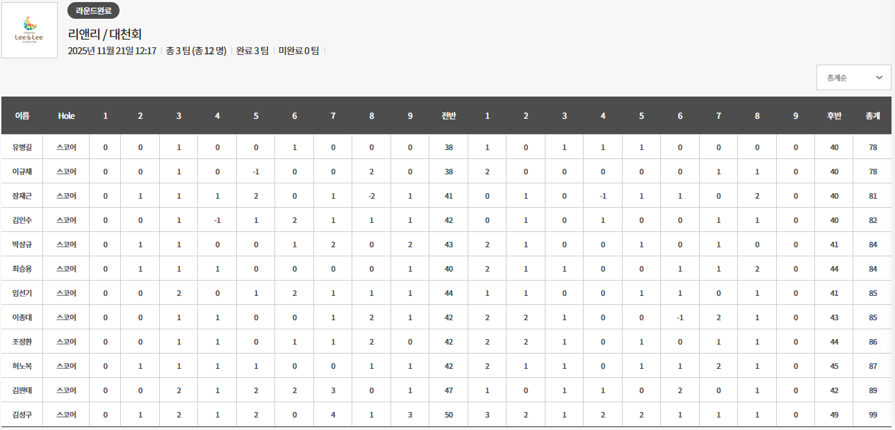 2025년 11월 월례대회 개인별 득점표(가평 리앤리) 작성자Stephen성구|작성시간25.11.22|조회수2 목록 댓글 0 글자크기 작게가 글자크기 크게가 다음검색 현재 게시글 추가 기능 열기 북마크 공유하기 신고 센터로 신고 댓글 댓글 0 댓글쓰기 답글쓰기 댓글 리스트