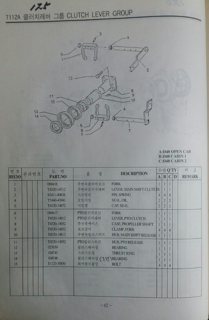 실린더 거동 확인: 2인 1조로 한 명은 레버를 조작하고, 한 명은 하부에서 **PTO 클러치 실린더(135p-2번)**가 끝까지 밀려 나오는지 보십시오.