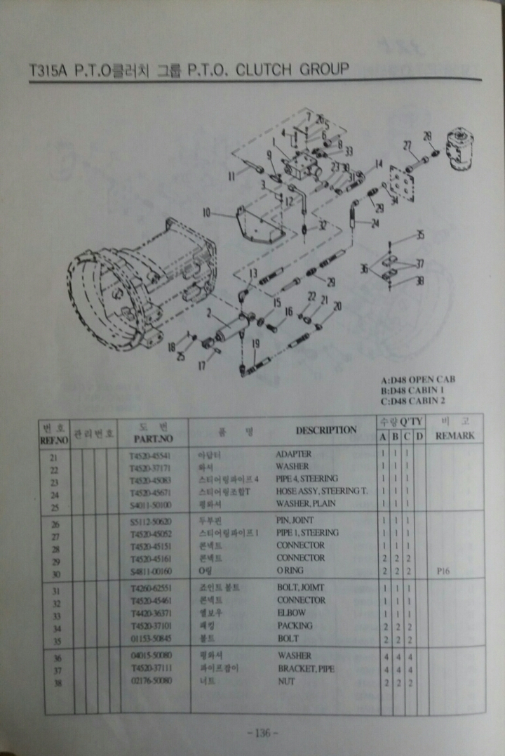 반갑습니다, 올려주신 사진과 증상을 보니 대동 D48 모델의 PTO 클러치 계통 문제로 보입니다.