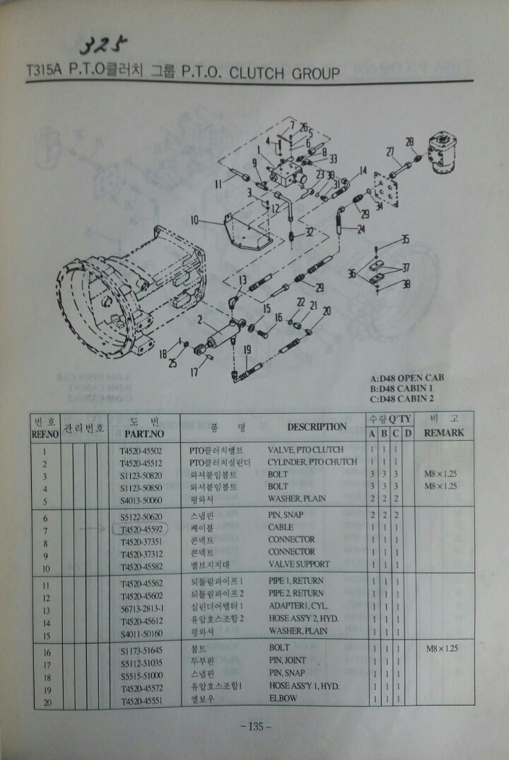 1. PTO 클러치 밸브 및 케이블 점검 (도면 135p)