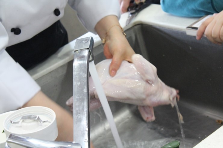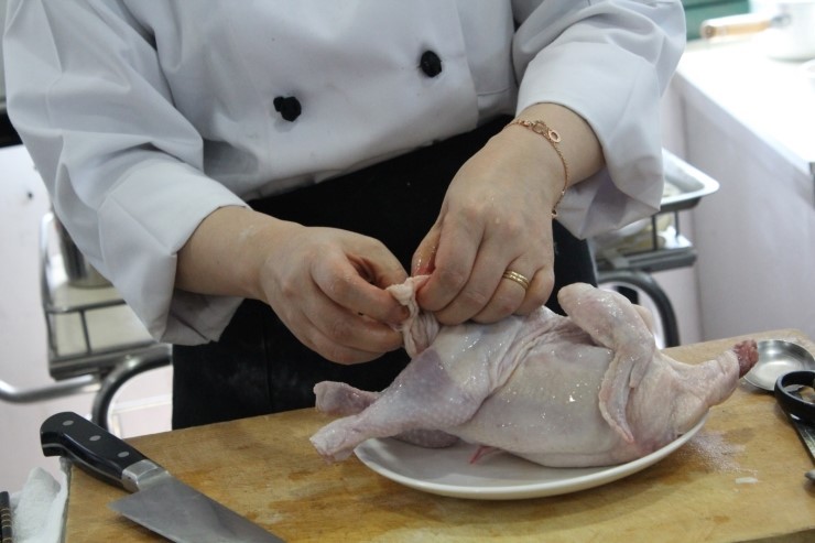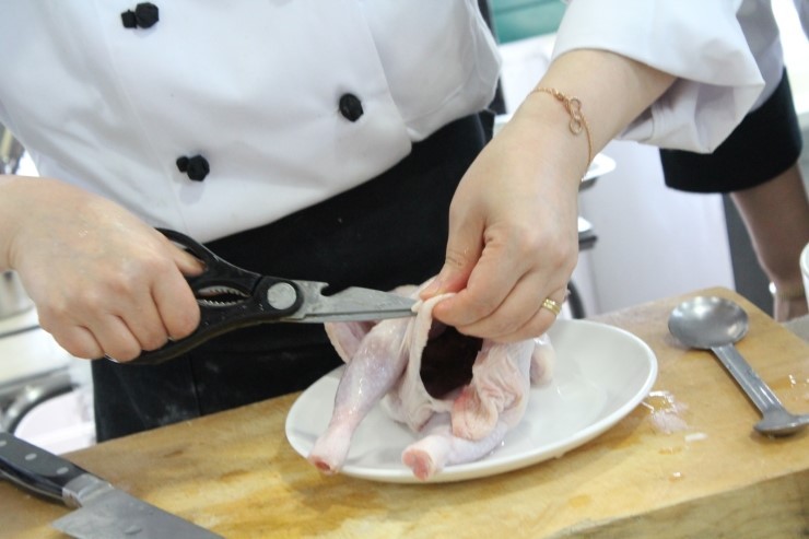 날개 끝부분도 잘라주세요. 날개 끝부분으로 피가 몰리기 때문에
