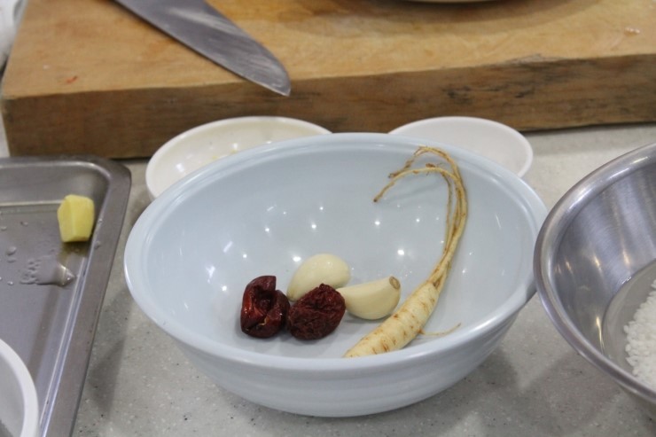 나중에 삼계탕이 끓어오를때 넣어주면 인삼향이 가득한