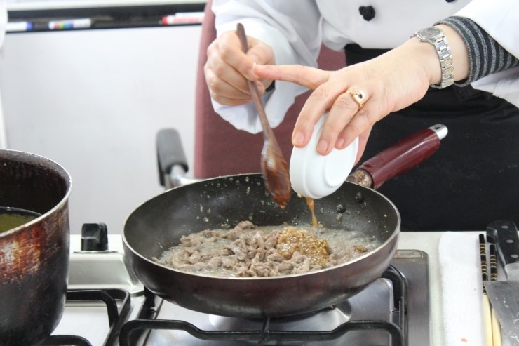 소고기에 양념장 넣고