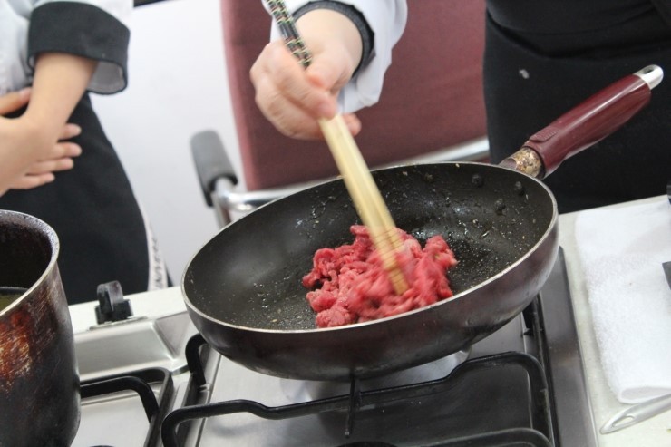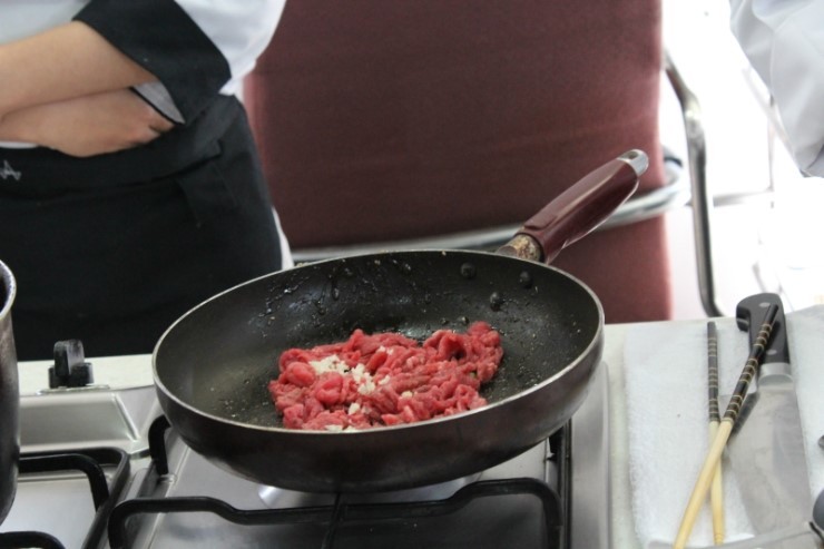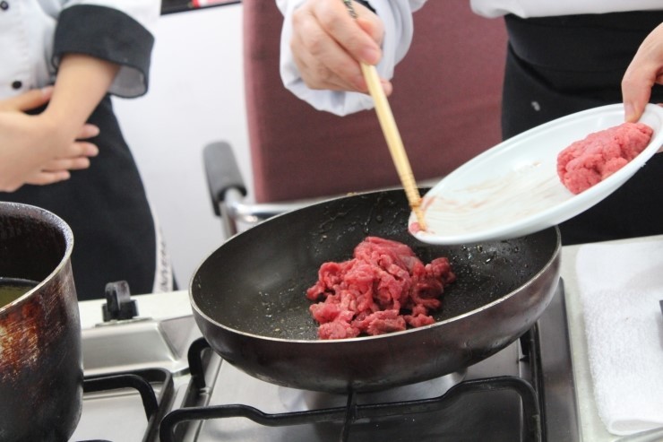 팬에 소고기를 넣어주고