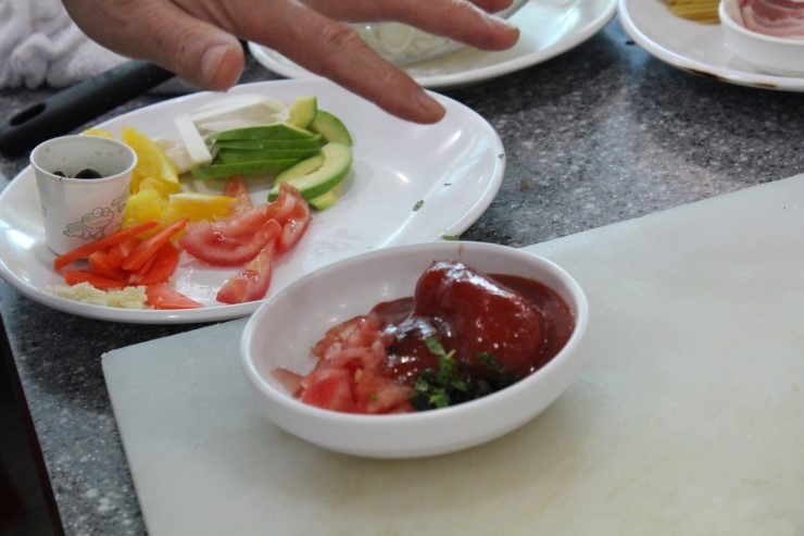 우선 토마토 다진거와 타임 다진거 토마토홀, 블랙올리브