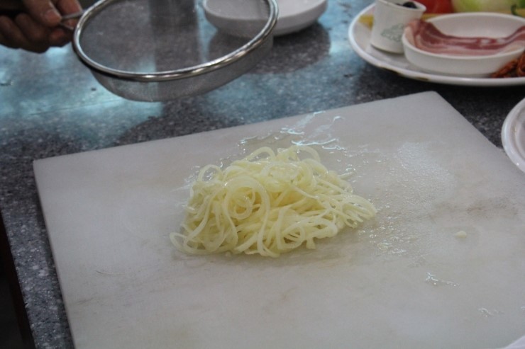 감자는 기계에 넣어 돌돌 말리게 빼주시구요