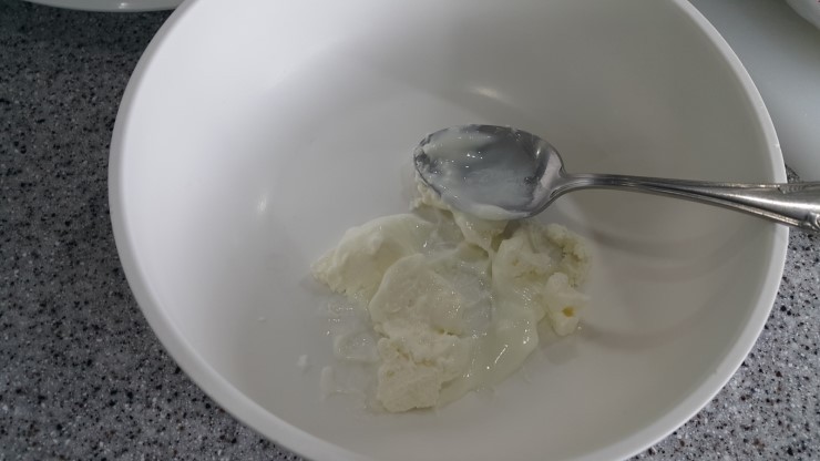 거품을 걷어내고 몰드나 종이컵에 부어서