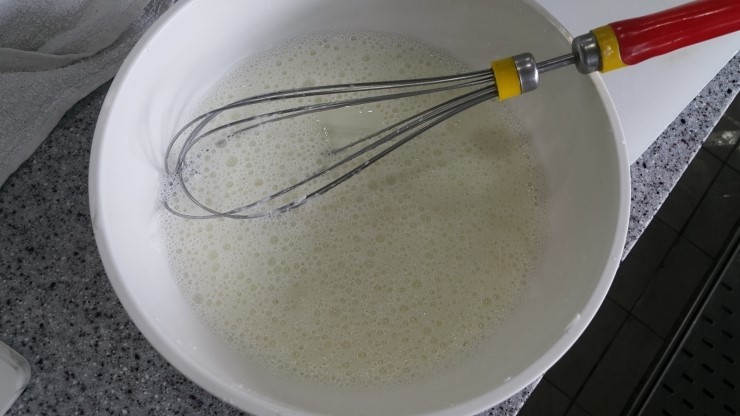 데운우유를 조금조금씩 부어가며 저어줍니다.
