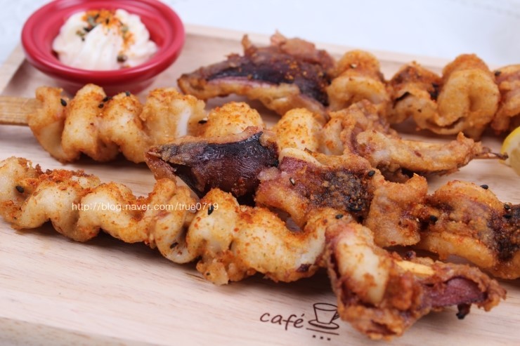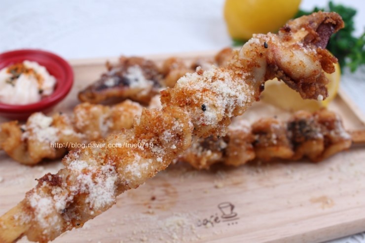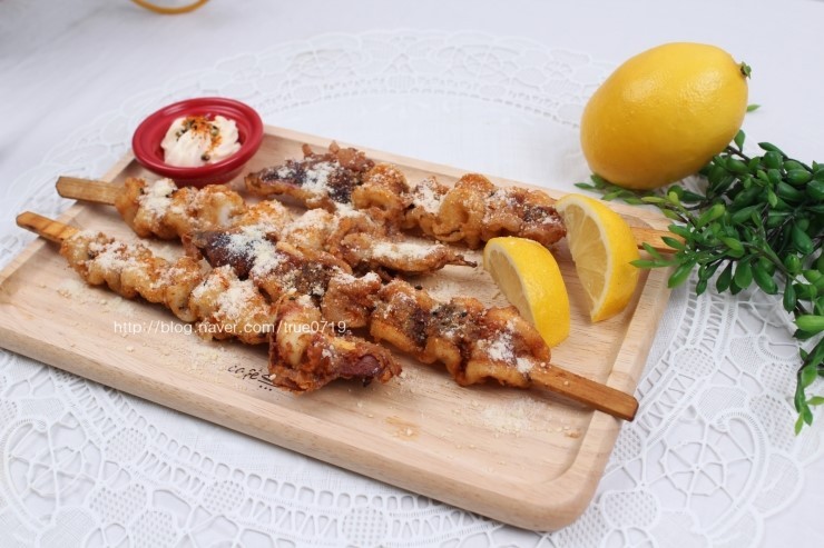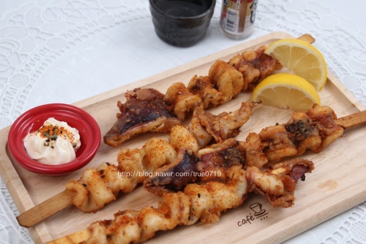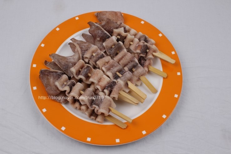 튀겨도 되고 구워먹어도 되는 정말 간단한 오징어꼬치입니다