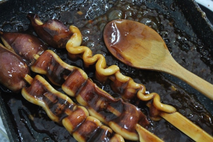 반질반질 데리야끼 오징어 꼬치~