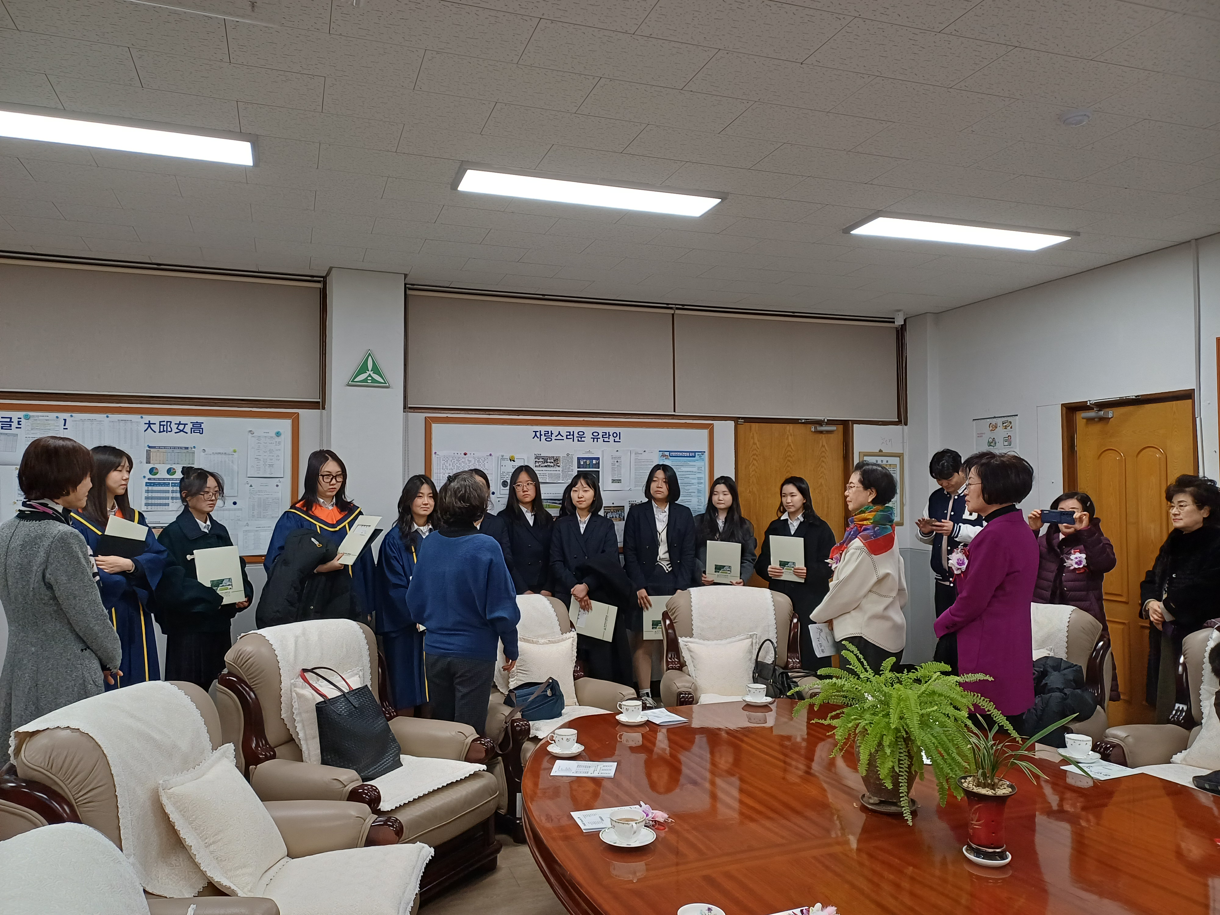 재경유란장학회에서는 김영희 이사장, 차복련 고문, 안중임 사무국장, 류잠태 이사, 김경숙 재경동창회장이 모교를 찾아 졸업식에 참석해 자리를 빛내 주었으며 각 반의 우수학생 한명씩 추천받아 시상하였습니다