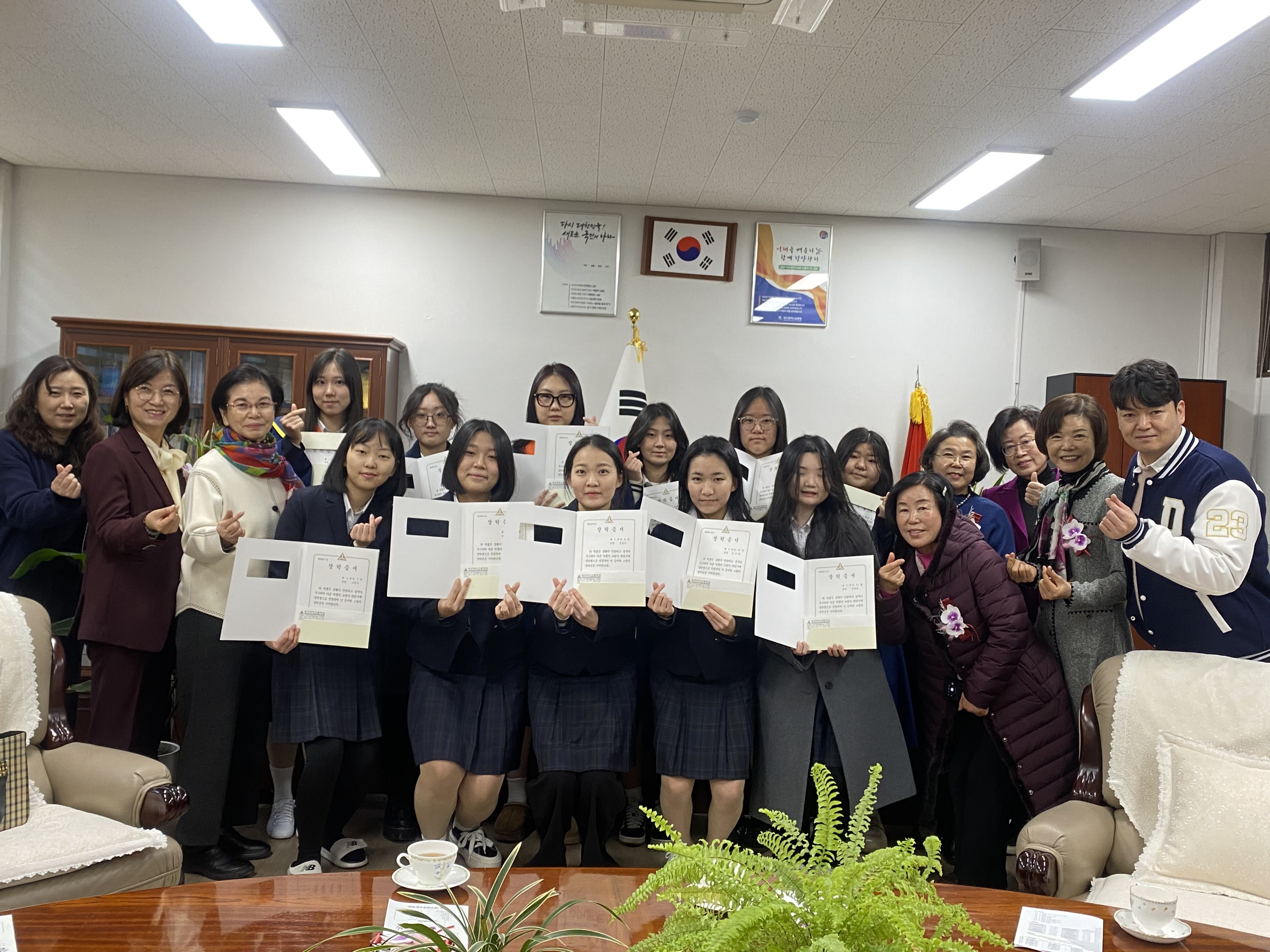 시상식이 끝난 후 수상자들에게 "장학금의 의미는 노력에 대한 응원이자 앞으로 더 크게 도전하라는 믿음의 표현"이라 전하며 "앞으로 각자의 자리에서 성실함과 배려를 잃지 않기를 바라면서 또한 모교의 이름을 자랑으로 만들고 언젠가 후배의 꿈을 응원하는 선배가 되어달라"는 당부도 하였습니다.