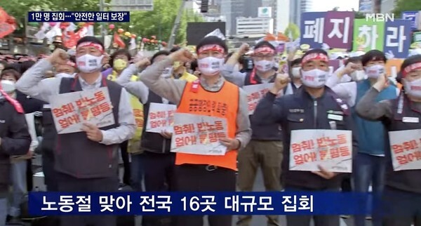 (5월1일 민노총의 도심 집회 / MBN NEWS)