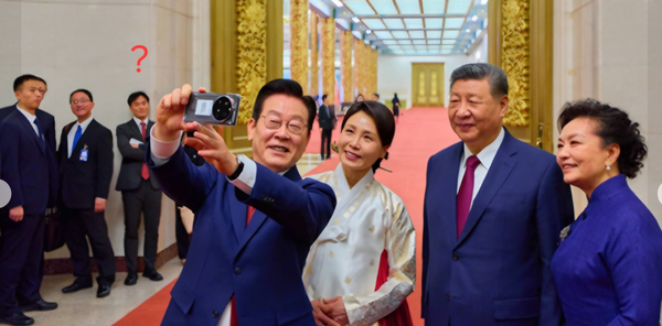 중국이 공개한 사진은 아래의 이재명, 김혜경 부부의 셀카 뿐이었다. 시진핑 부부의 얼굴은 없었다