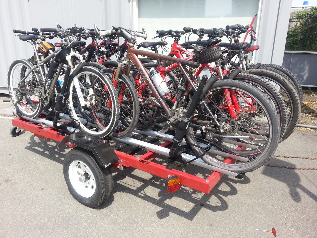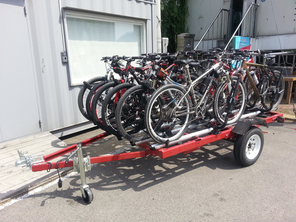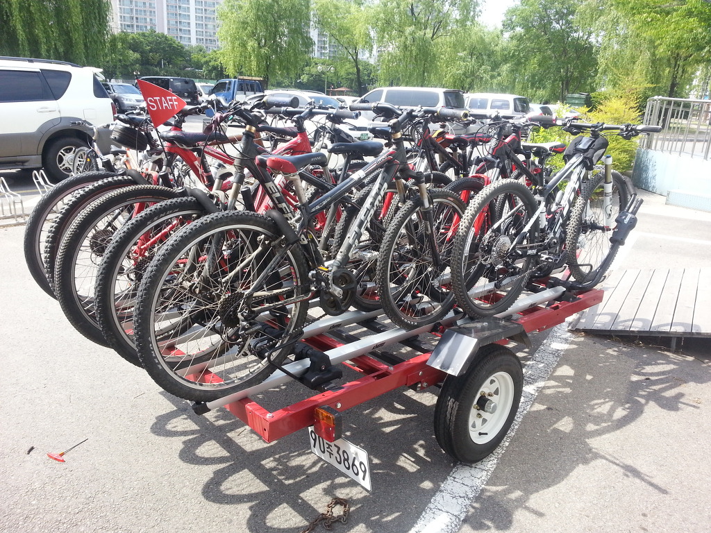 장거리 자전거 투어를 위하여 대량으로 자전거를 옮길 수 있는 트레일러가 필요합니다.